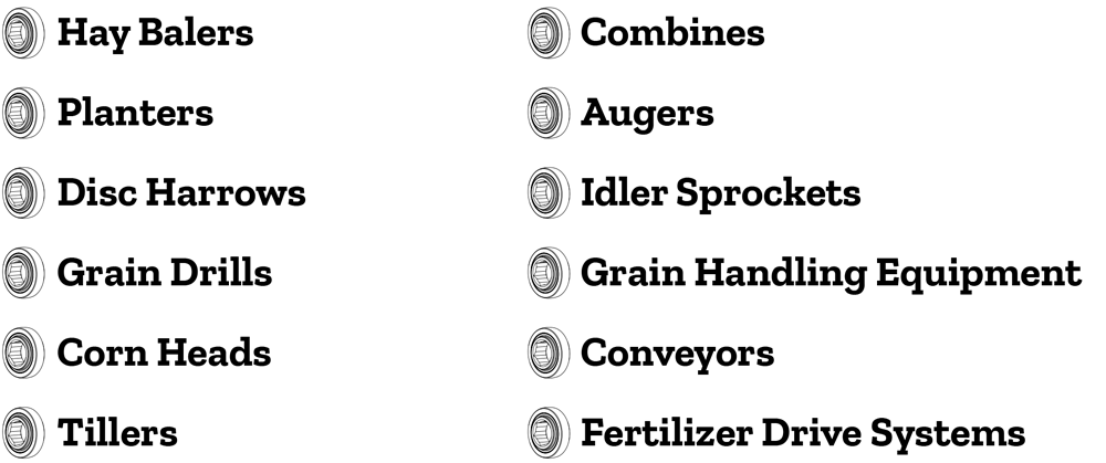 Hex Bore Bearings are ideal for hex shafts used in the agricultural industry, as they mount directly to hex shafting and provide a secure, positive drive without the need for locking mechanisms such as set screws, collars, or keyways, providing durability in tough field conditions. Triple-lip seals are standard on most of our Hex Bore Bearings, providing better protection against dust, dirt, and other contaminants.